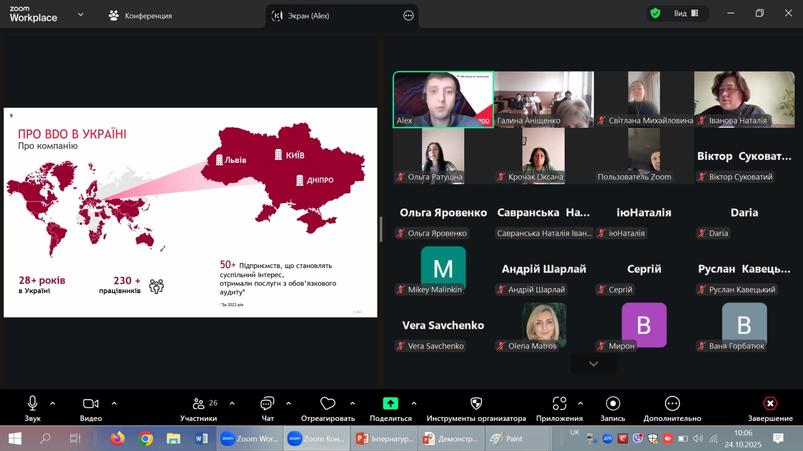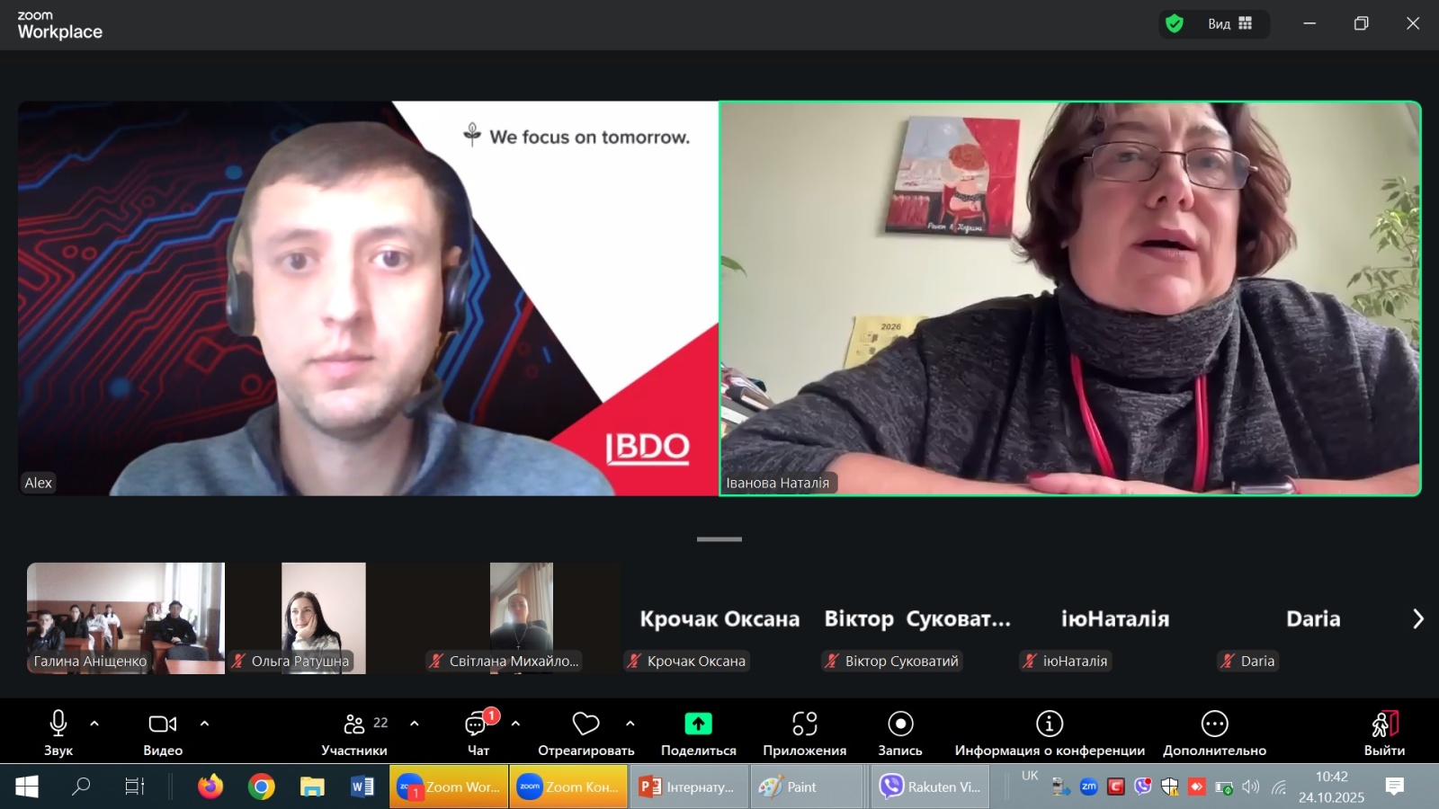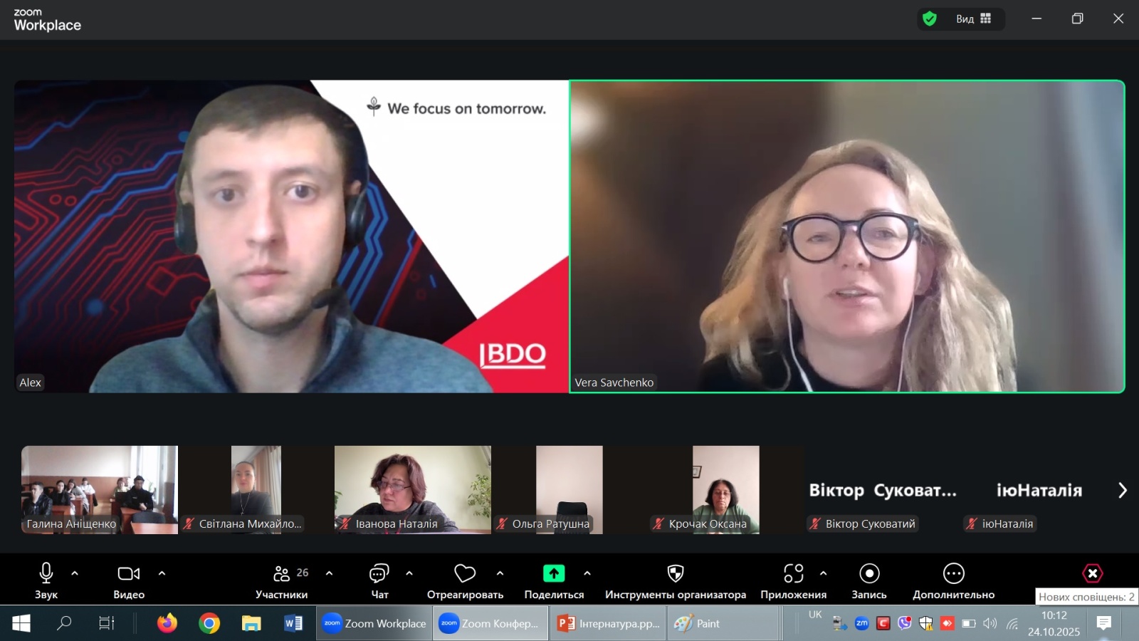 24 жовтня 2025 року на кафедрі обліку і оподаткування Уманського національного університету відбувся семінар-тренінг - Інтернатура для студентів за участі представників міжнародної аудиторської компанії BDO в Україні.