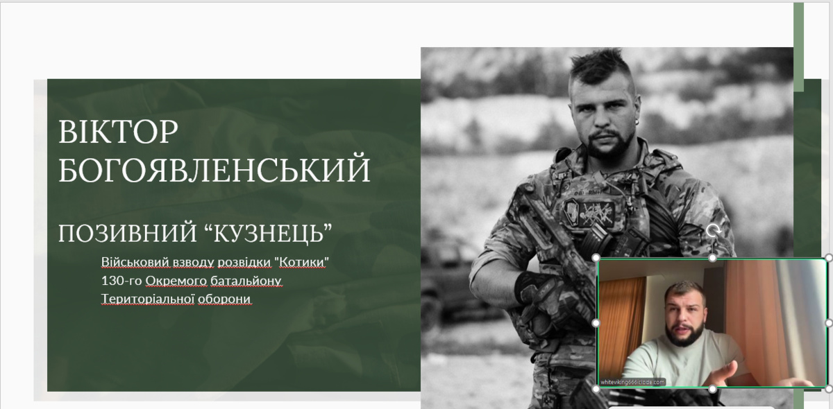 Головним гостем зустрічі став учасник бойових дій, ветеран війни, військовий взводу розвідки «Котики» 130-го окремого батальйону Територіальної оборони Віктор Богоявленський, який поділився власним досвідом служби та поглядами на роль кожного громадянина у зміцненні української державності.