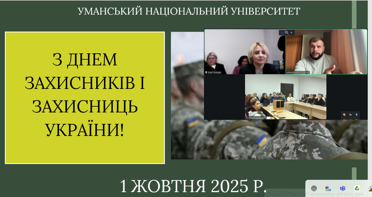 До Дня захисників і захисниць України на кафедрі обліку і оподаткування Уманського національного університету було проведено тематичний захід «Подвиг, що об’єднує покоління», метою якого стало вшанування мужності, стійкості та самопожертви тих, хто боронить нашу державу.