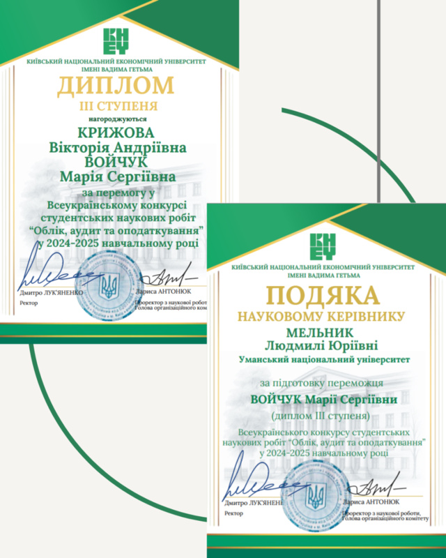 21 травня 2025 року у Київському національному економічному університеті імені Вадима Гетьмана відбулася підсумкова відеоконференція Всеукраїнського конкурсу студентських наукових робіт "Облік, аудит та оподаткування".